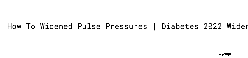 3.How To Widened Pulse Pressures