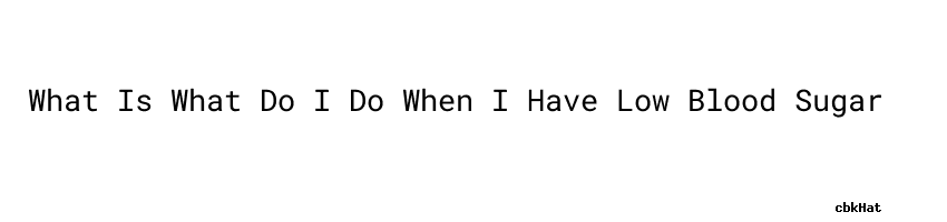 2. What Do I Do When I Have Low Blood Sugar